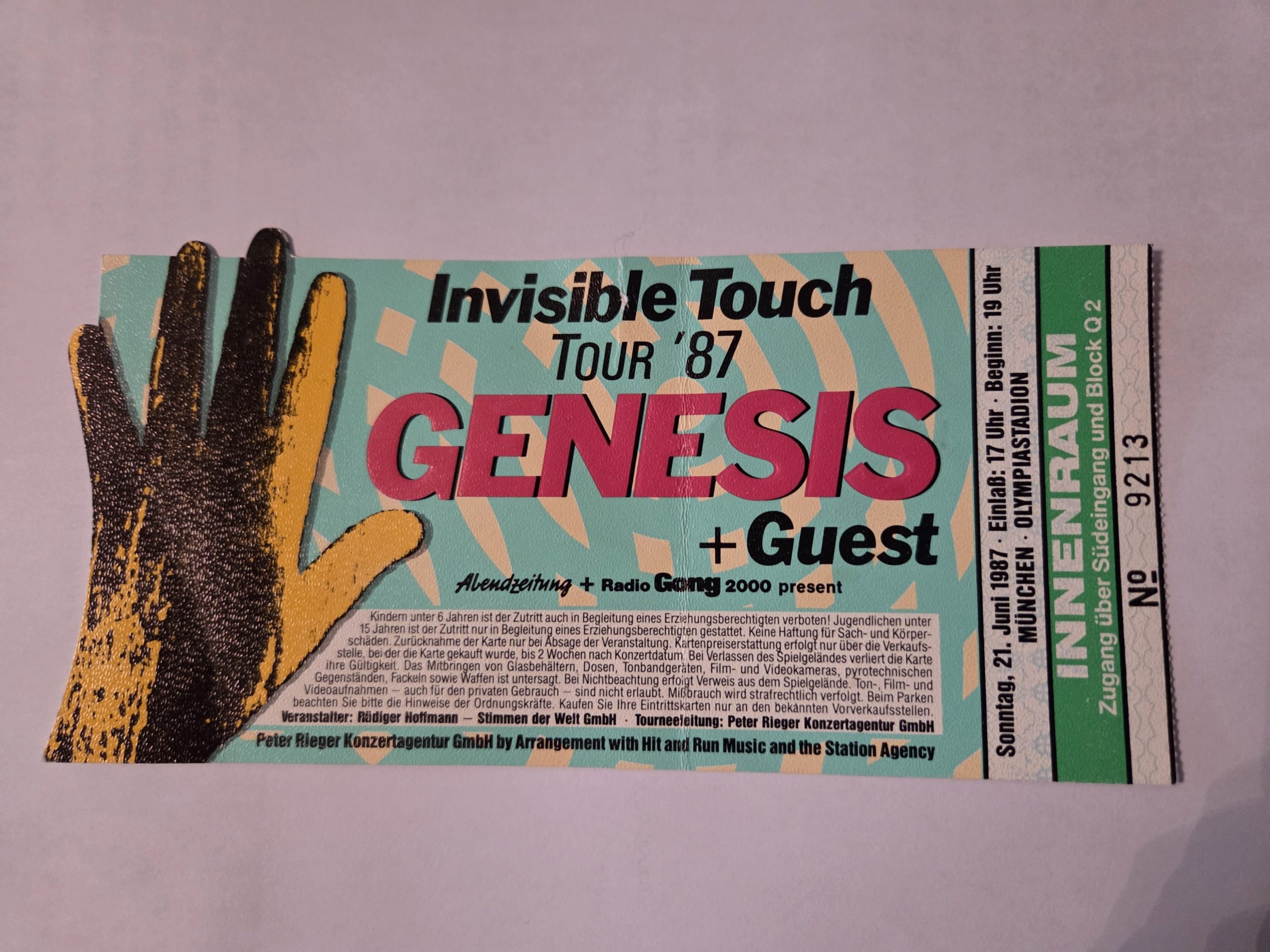 Von meinem damaligen Wohnort Augsburg nutzte ich einen Shuttle-Bus direkt zum Olympia-Park in München.  Das Konzert repräsentierte das bis dato erfolgreichste Album in der Bandgeschichte „Invisible Touch“ aus dem Jahr 1986. Viele Songs dieser Platte wurden zum festen Bestandteil späterer Tourneen.  Phil Collins tanzte besonders in den 80‘ auf fast allen Hochzeiten, Solo erfolgreich, nicht weniger Erfolg mit Genesis und  zum „Ausgleich“  mit der Jazz Rockband Brand X. Seine Popularität schien in diesen Jahren keine Grenzen zu kennen.  Das Album brachte fünf US Top 5-Singles hervor und mit dem Titelstück „Invisible Touch“  den einzigen Nummer 1 Hit in den US Charts.  Dieses Album empfand ich immer als sehr kommerziell, allerdings auf hohem Niveau, ein Album mit dem sie Zeitgeist bewiesen. Für mich eine gut gemischte Pop-Platte die einen perfekten Mix aus Pop-Rock-Songs und progressiv geprägten Titeln enthält, das Werk war nicht umsonst eines der erfolgreichsten Alben von Genesis.