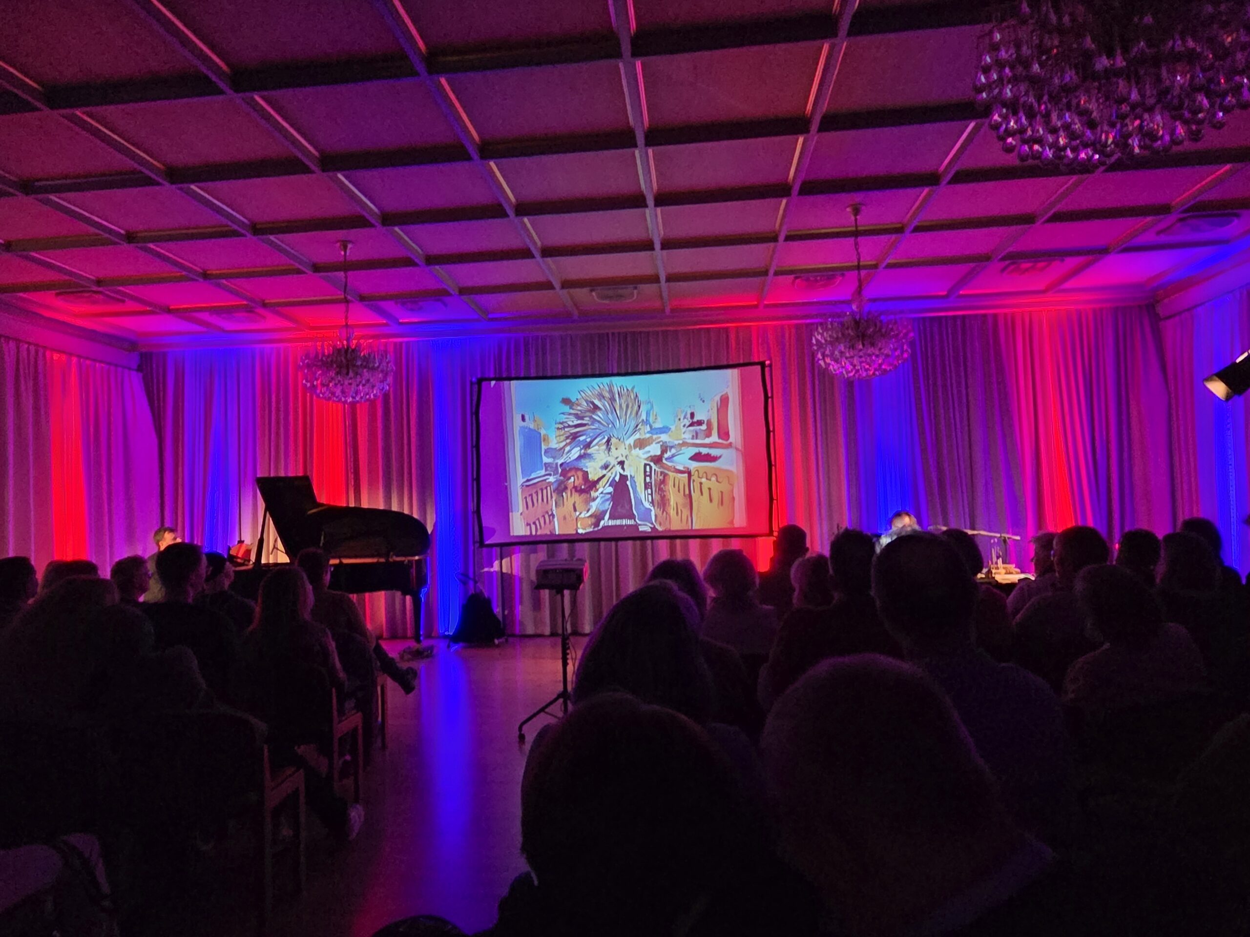 „Ein Abend voller Magie und Musik – ein außergewöhnliches Kunst- und Konzerterlebnis, das Musik und Malerei auf magische Weise verbindet! Der Pianist Steffen Waidelich interpretiert die legendäre Musik der Band Genesis, während der Maler Frank Grabowski live auf der Bühne Kunstwerke entstehen lässt – synchron zu den Klängen der Musik.“ So wurde dies in der örtlichen Presse angekündigt. War es denn auch so? Am 28.Februar 2026 konnte ich mich selbst davon überzeugen.